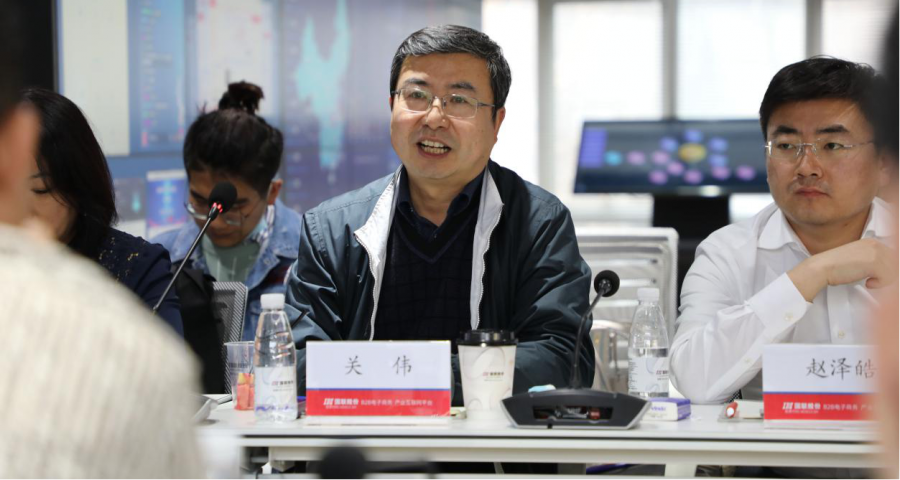 交流中,国联股份高级副总裁潘勇以公司“平台、科技、数据”整体战略为纲,对国联股份平台服务建设、科研创新方向、产业大数据创新应用等内容进行了系统介绍,并围绕国联股份在业务推进中的创新实践与所有到访人员进行了具体交流。各方均表示收获颇丰。
