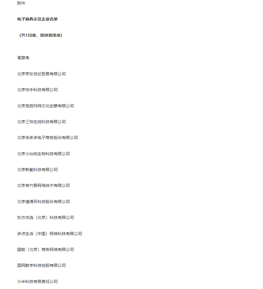 近日,商务部公示“电子商务示范企业名单”,全国共132家企业成功入选,其中,北京市14家,涂多多和京东、美团、快手、国网电商等共同入选。