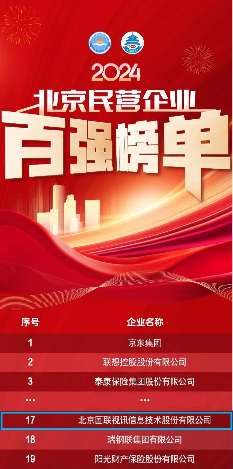 9月26日,北京市工商联权威发布2024北京民营企业百强“1+4”榜单。国联股份凭借稳健发展的综合实力以及对社会的责任担当能力,成功入选2024北京民营企业百强和社会责任百强双榜单。